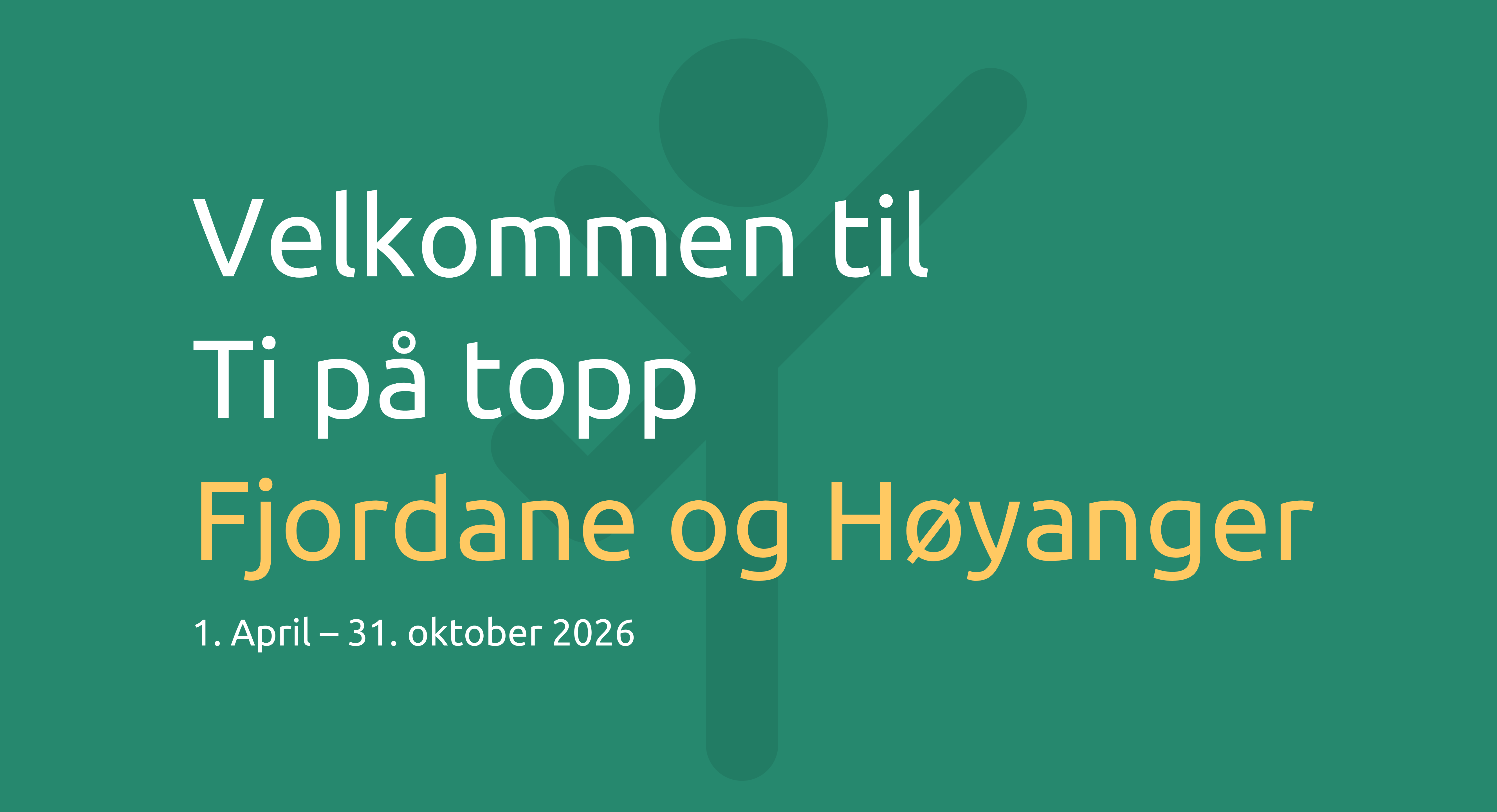 Ti på topp er et godt tilrettelagt turtilbud hvor du, familie, venner eller kolleger kan få påfyll og oppleve noe av det beste naturen i Fjordane & Høyanger har å by på.